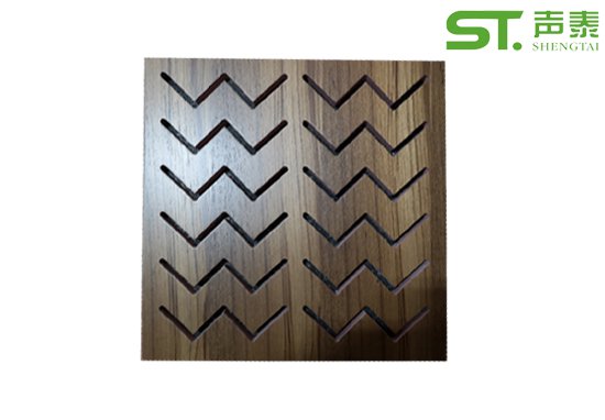 聲泰聲學環保科技館定制吸音板選用優質的中纖板、具有環保、防火、防水等功能,飾面色彩及 材料選擇性廣,能極好地滿意客戶多樣化的聲學及裝修需要。較槽木吸音板,孔木吸音板相對立撞擊能力強。